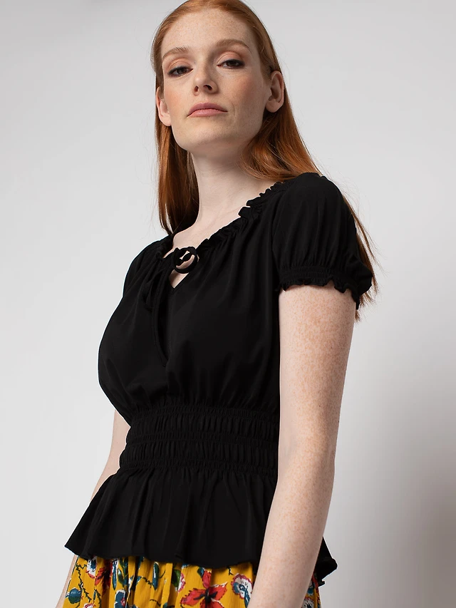 Button-Up Abstract Print Blouse with Roll-Up Long Sleeves & Side Slits by Devia