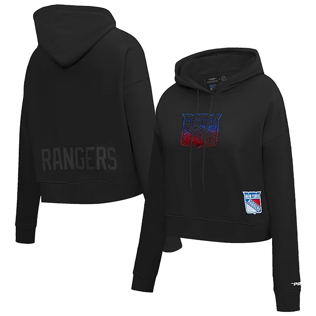 Women's Pro Standard Black New York Rangers Jewels Cropped Pullover Hoodie