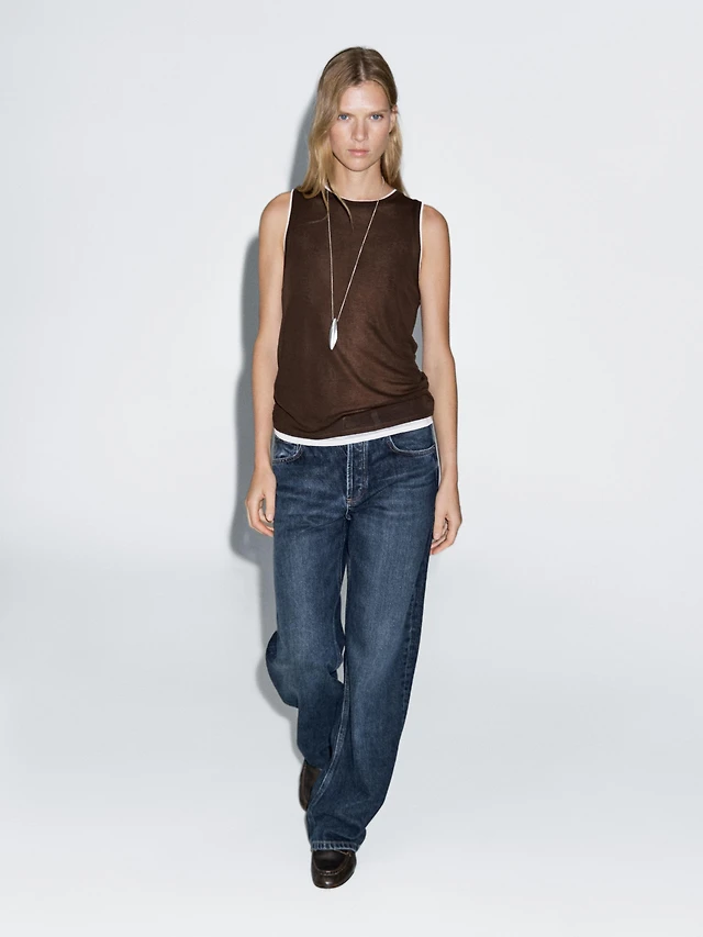 Ardene Pointelle Lettuce Edge T-Shirt in | Size | Polyester/Rayon/Nylon