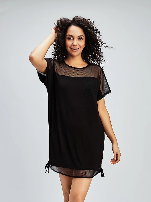 Ardene Poplin Trim Mini Dress in Black | Size | Polyester/Spandex/Cotton
