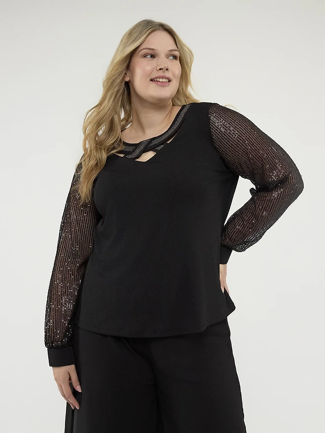 ELOQUII Elements Women's Plus Size T-Shirt with Lopped Off Sleeve