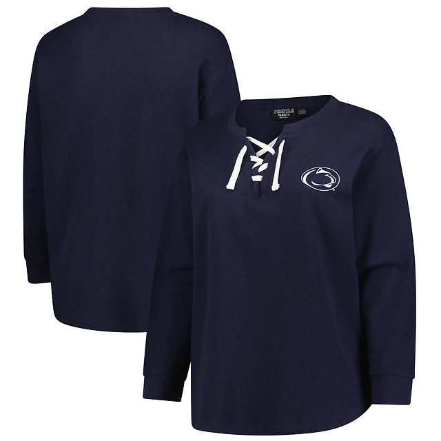 Women's New Era Navy Seattle Seahawks Plus Athletic Varsity Lace-Up V-Neck Long Sleeve T-Shirt