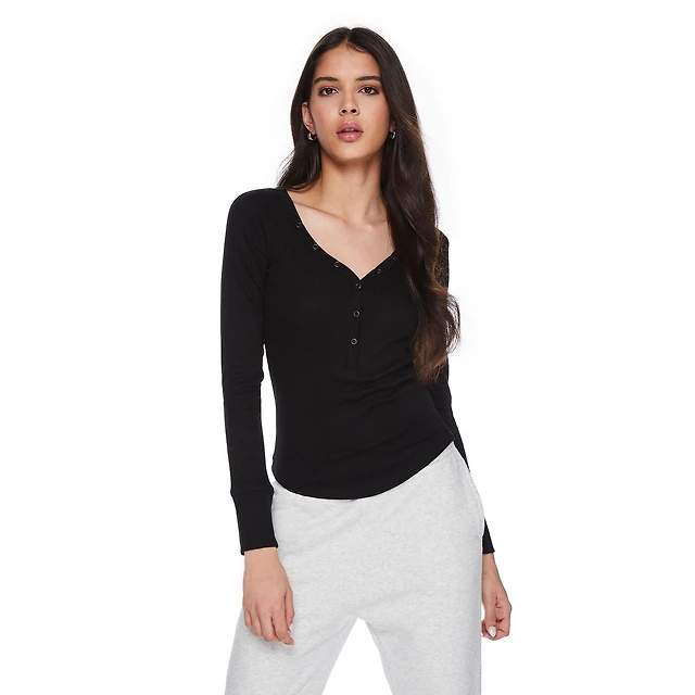 No Boundaries Women's Long Sleeve Henley Top, Sizes XS-XXL