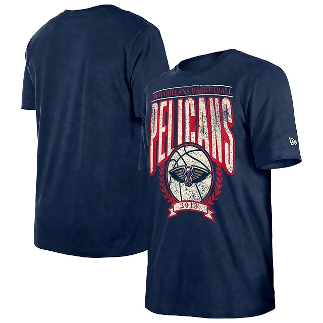 Men's New Era Navy Orleans Pelicans Throwback Vintage Boxy Mineral Wash T-Shirt