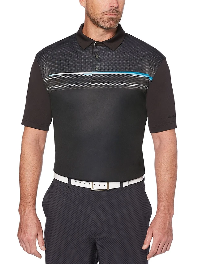 Ben Hogan Men's Performance Stacked Mini Geometric Print short Sleeve Polo Shirt