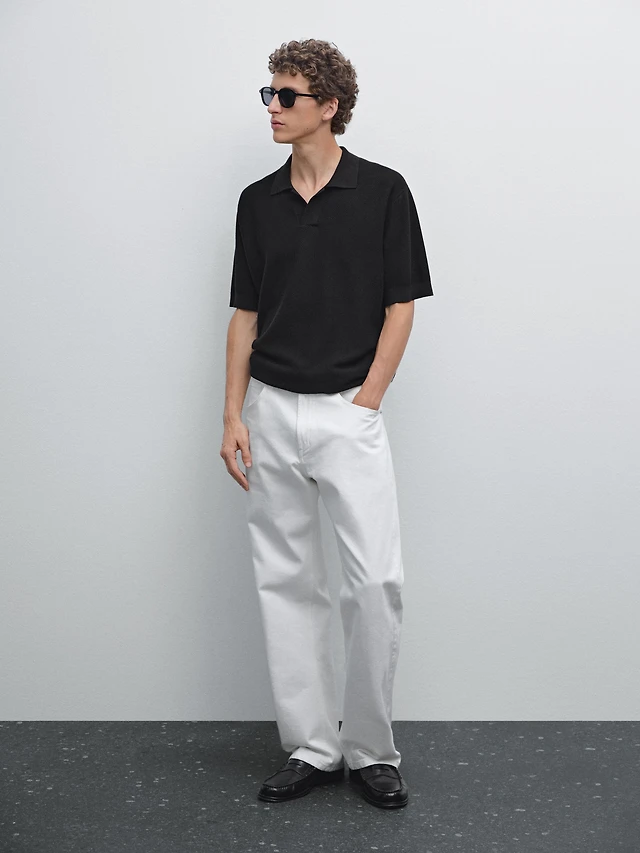 Textured knit V-neck polo shirt