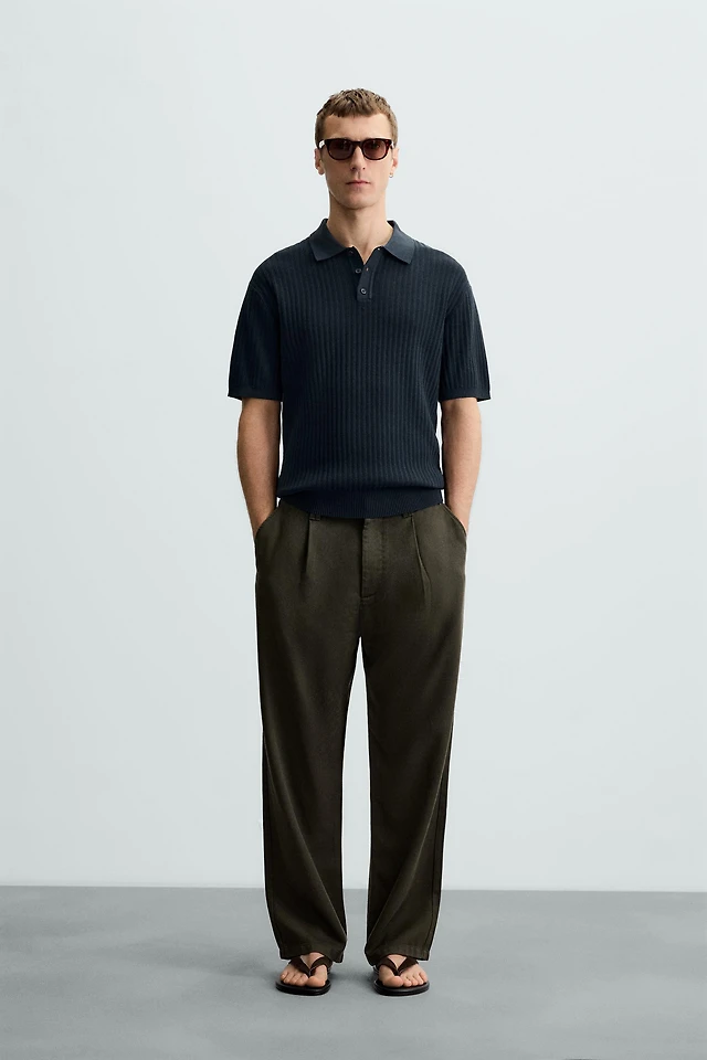 VERTICAL TEXTURED KNIT POLO SHIRT