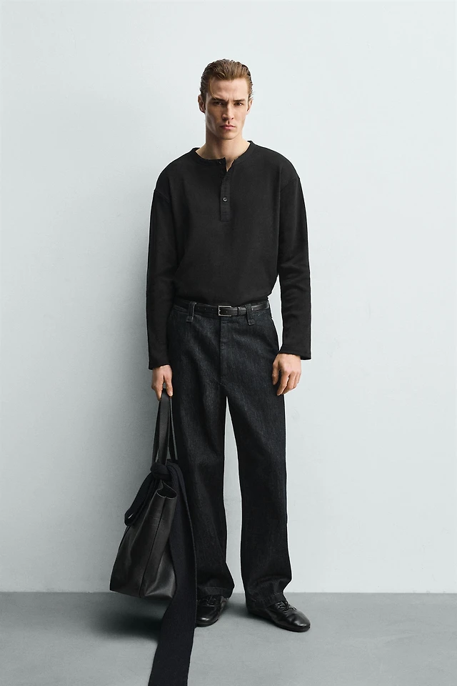 RIB STRUCTURE HENLEY COLLAR T-SHIRT