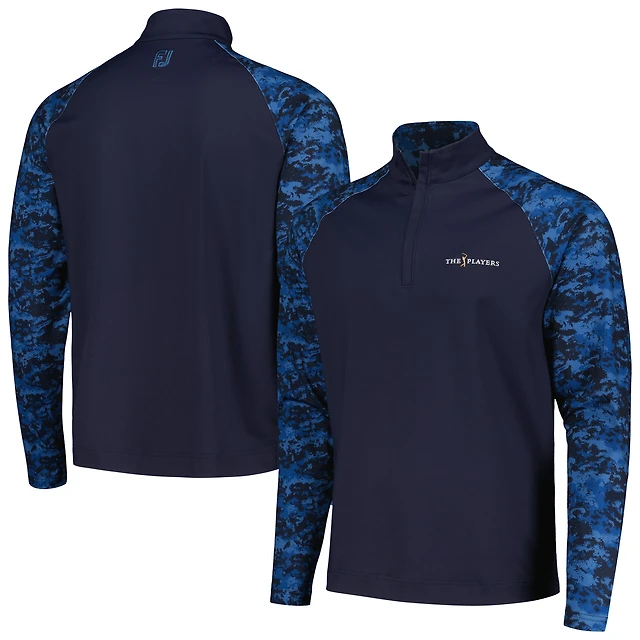 Men's FootJoy Navy THE PLAYERS Camo Color Block Raglan Midlayer Quarter-Zip Top