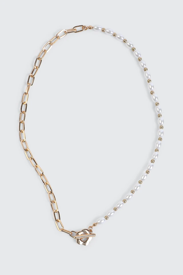 Ardene Pearl & Chain Necklace with Daisy Toggle in Gold