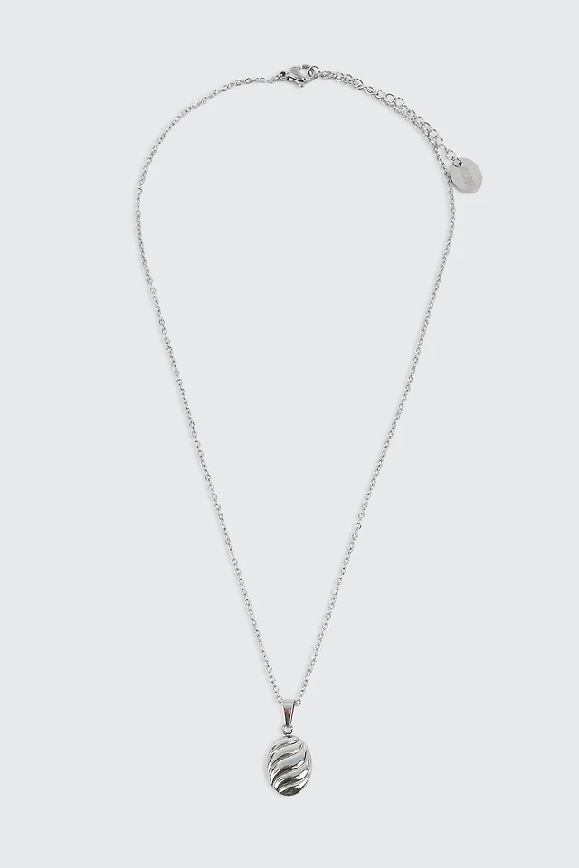 Ardene Stainless Steel Necklace with Ribbed Pendant in Silver