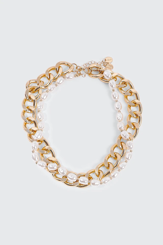 Ardene 2-Pack Curb Chain & Pearl Necklaces in Gold