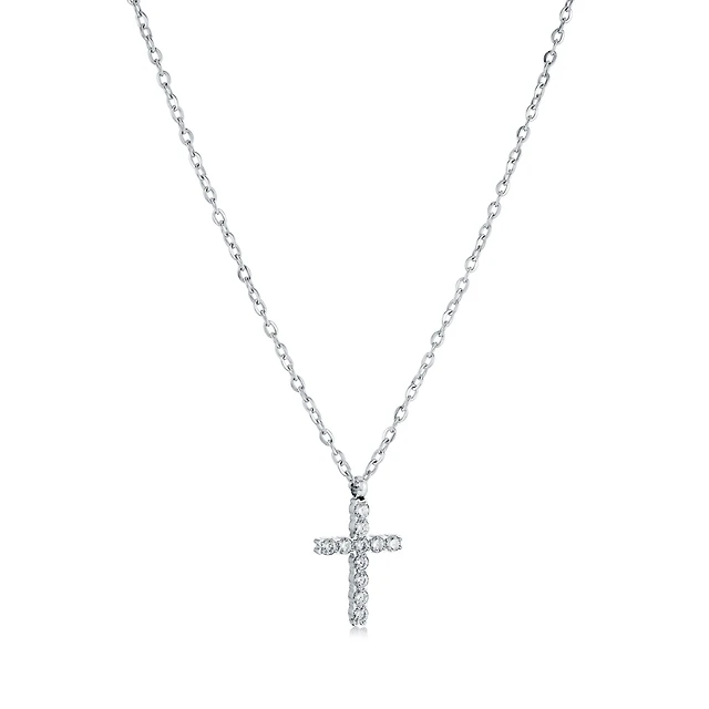 Stainless Steel Cross Pendant Necklace with Cubic Zirconia – 16