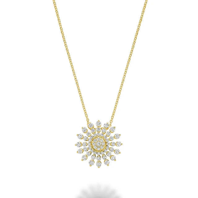 10K Gold Cluster Pendant Necklace with Lab-Grown Diamonds. Color: yellow | Doucet Latendresse