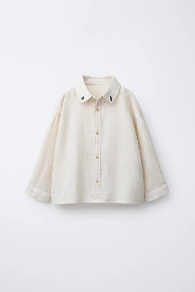 PLAID SHIRT WITH EMBROIDERED TEXT