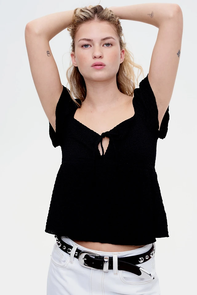Lacing-Detail Rib-Knit Top