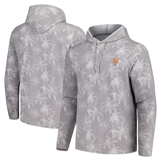Men's Tommy Bahama Gray New York Mets Palm Frenzy Hoodie Long Sleeve T-Shirt