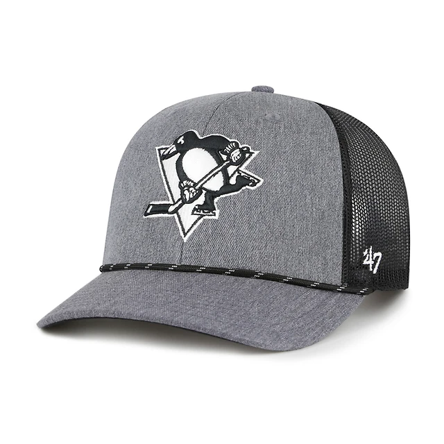 Men's '47 Charcoal Pittsburgh Penguins Canteen Pigment Dyed Patch Trucker Adjustable Hat