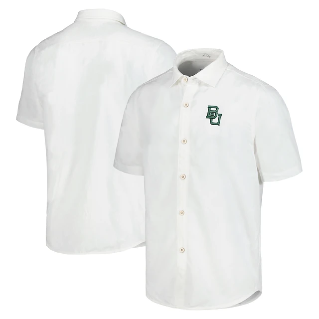 Men's Tommy Bahama White Baylor Bears Coconut Point Palm Vista IslandZone Camp Button-Up Shirt