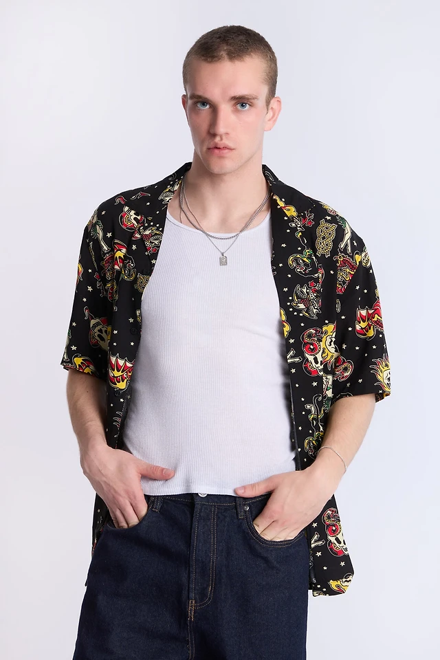 Zoo York Mens Oval Patch Logo Twill Button-Up