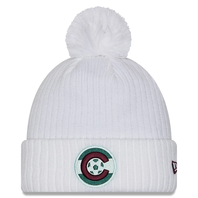 Men's New Era White Columbus Crew 2025 Jersey Hook Cuffed Knit Hat With Pom