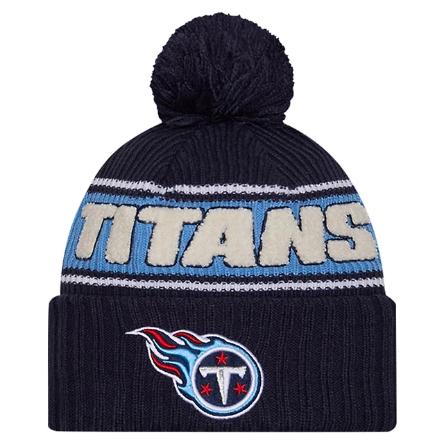 Women's New Era Black Tennessee Titans 2025 NFL Crucial Catch Cuffed Knit Hat with Pom