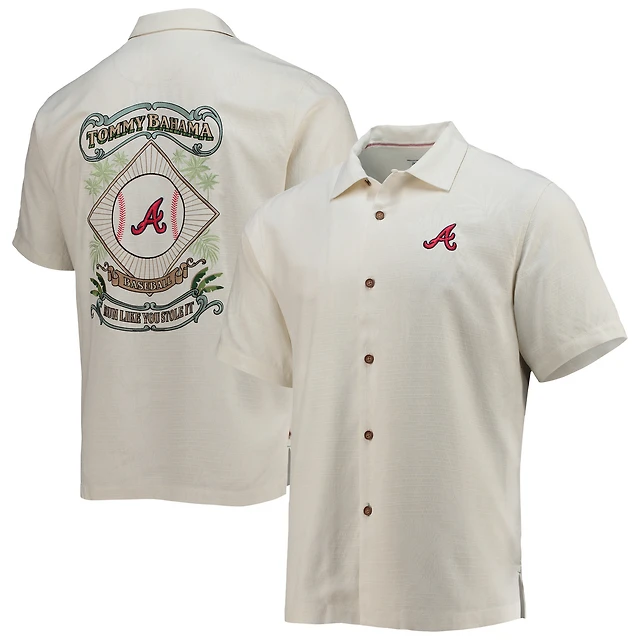 Men's Tommy Bahama Cream Atlanta Braves Baseball Camp Button-Up Shirt