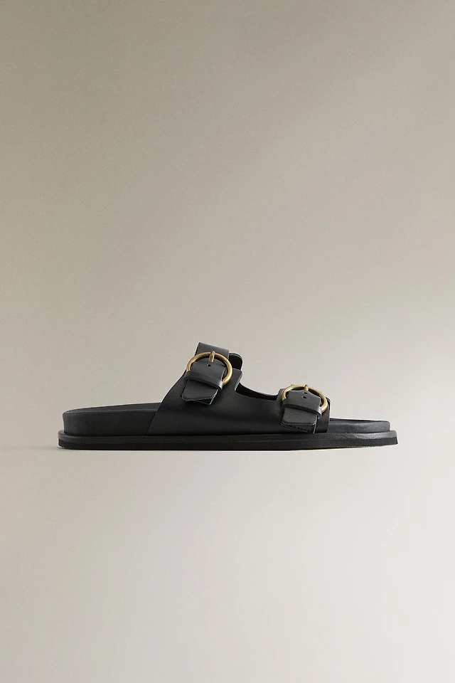 FLAT LEATHER SANDALS WITH BUCKLES