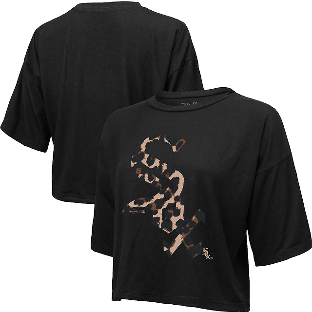 Women's Majestic Threads Black New England Patriots Leopard Cropped Pullover Hoodie