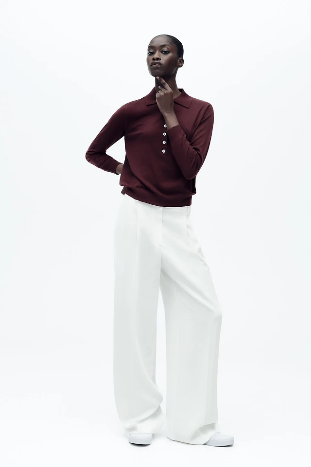 Cable-knit polo shirt