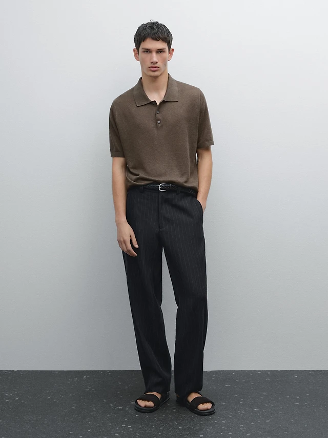 Linen and cotton knit polo shirt