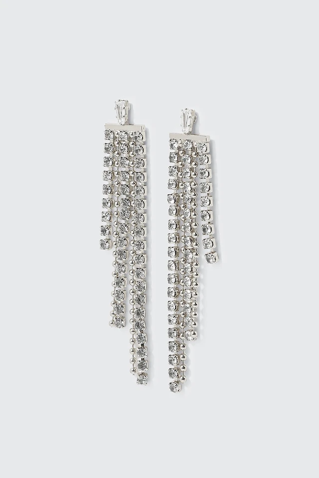 Ardene Rhinestone Bow Earrings in Silver | Stainless Steel
