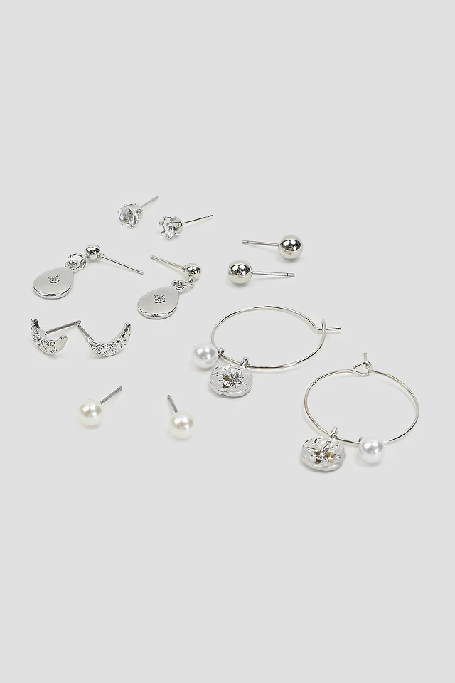 Stainless Steel Moon Stud Earrings – 6mm. Color: white | Doucet Latendresse