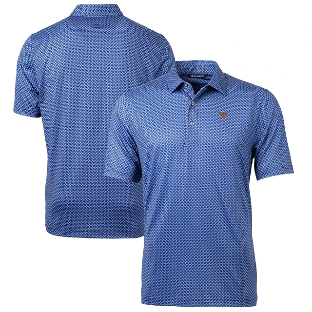 Men's Cutter & Buck Navy Texas Longhorns Big Tall Pike Double Dot Print Stretch Polo