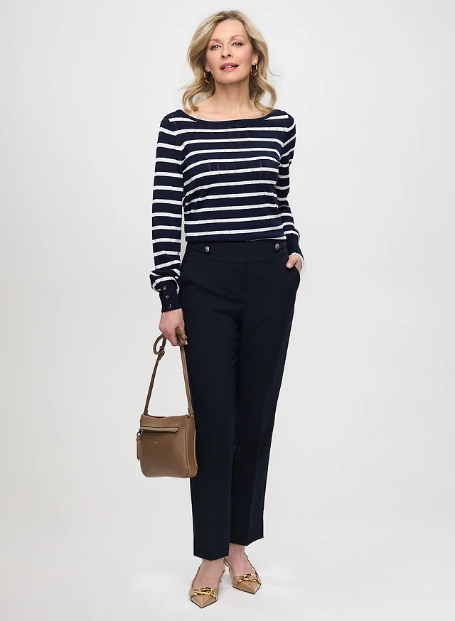 Decorative Button Stripped Sweater & Slim Leg Ankle Pants