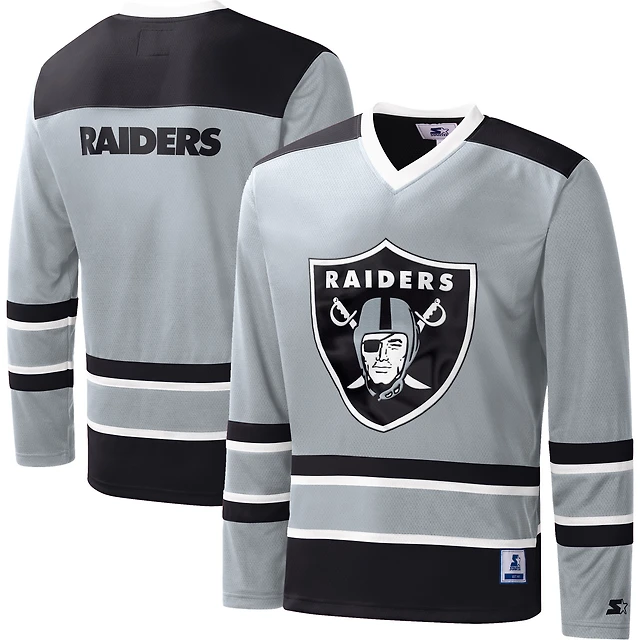 Men's Starter Gray Winnipeg Jets Cross-Check V-Neck - Long Sleeve T-Shirt