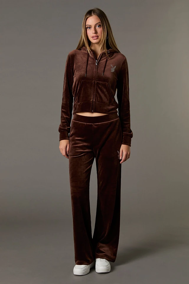 Pantalon à jambe large en velours avec Playboy pierres du Rhin