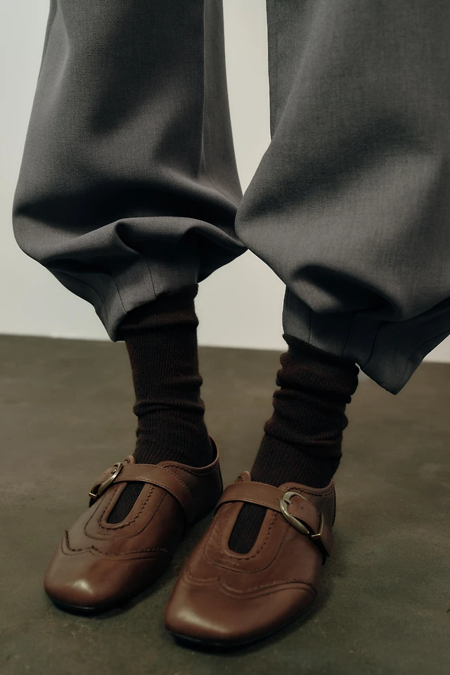 SPLIT LEATHER LACE-UP BALLET FLATS