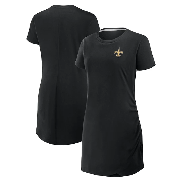 Women's Fanatics Black New Orleans Saints Ruched Drape T-Shirt Dress