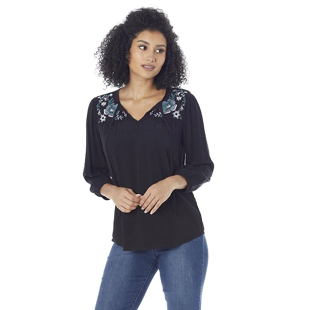 Women's Knit Boat-Neck Long Sleeve Top | M
