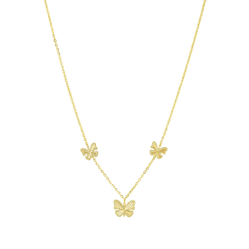 10k Gold Necklace with 3 Butterflies - 18