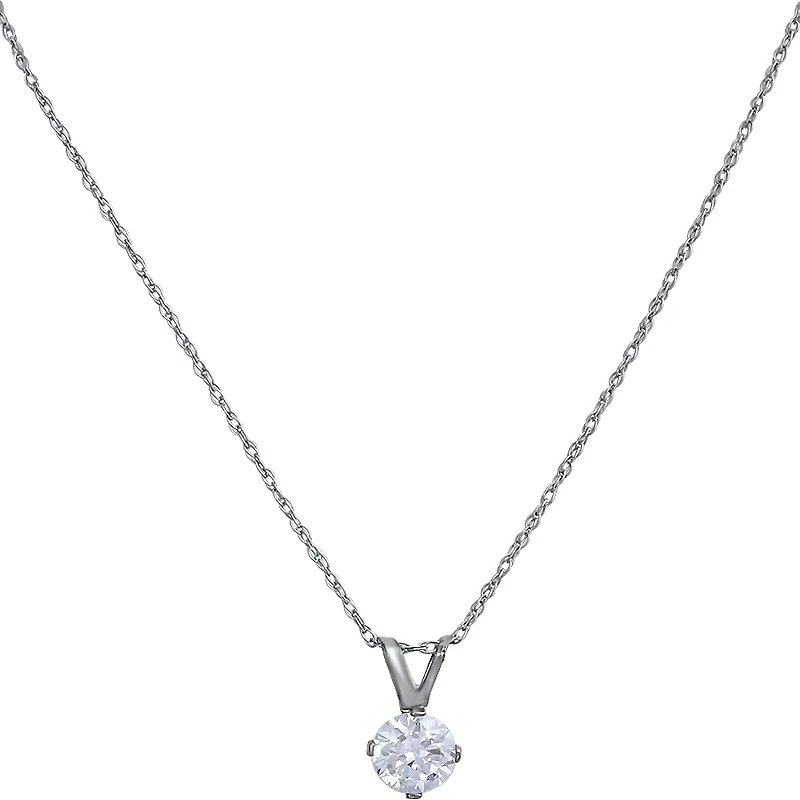 10k white gold pendant set with a cubic zirconia.
