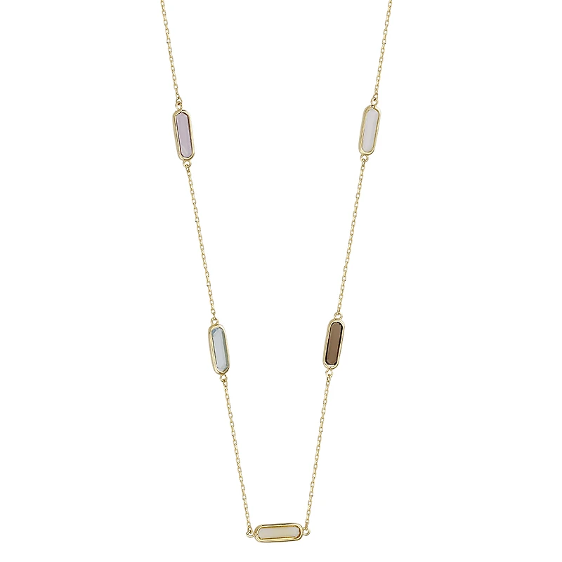 10k yellow gold necklace set with 5 synthetic stones. It measures 18'' in length.
