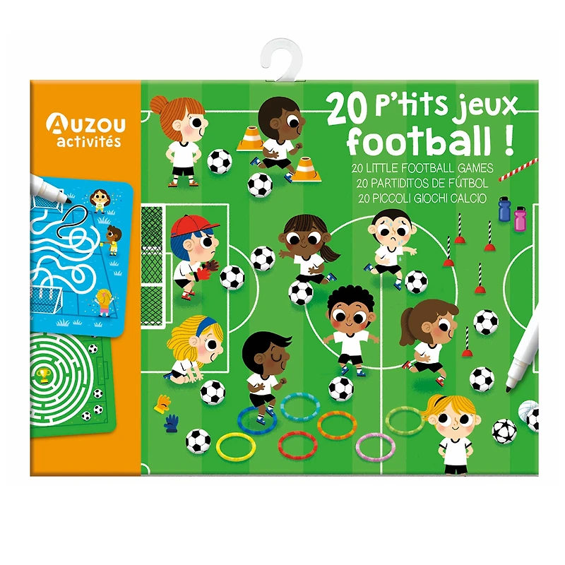 With 20 laminated cards, children can have fun around the soccer theme with mazes, seek-and-find games, connect-the-dots, and many other activities. Once flipped over, the cards come together to form a large giant game board to extend the fun! Erasable marker included, so the games can be played again and again endlessly.