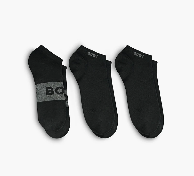A daily essential with a polished edge, the BOSS AS Logo CC socks deliver comfort and simplicity in a versatile three‑pack. Made from a soft cotton‑blend knit with added stretch, each pair features a clean ankle‑length profile, subtle logo detailing, and a breathable construction. Reinforced heel and toe zones add durability for everyday wear.