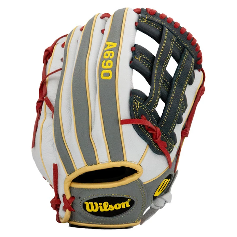 The Wilson A690 - 12" junior fielders' glove features full leather construction that's soft and ready to play after a quick break-in process, helping young baseball players learn the ropes on defence.