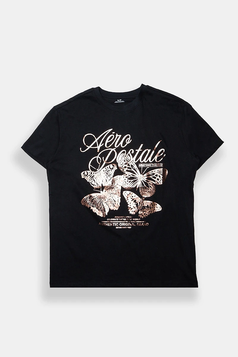Women's t-shirtAéropostale gold butterflies graphic printed on the chestCrew neckBoyfriend fit100% CottonMachine wash inside out in cold water - Gentle with like colours - No bleach - Tumble dry low - Low iron on reverse sideImportedStyle #6550-65942601