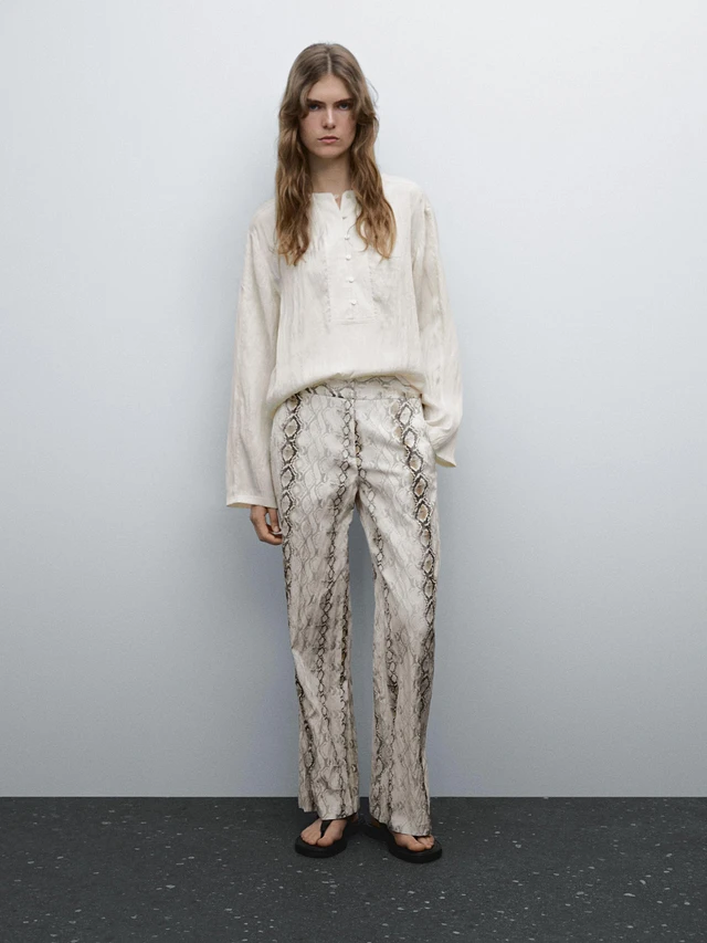 ANIMAL PRINT JACQUARD STRAIGHT-LEG PANTS ZW COLLECTION