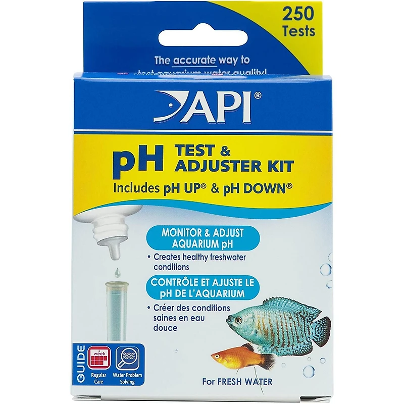 Keep your fish healthy and thriving by testing your aquarium water's pH regularly with an easy-to-use API Freshwater Aquarium pH Test Kit. Testing water parameters weekly helps prevent invisible water problems that can be harmful to fish. pH is the measure of the acidity of water, on a scale ranging from 0 to 14. A pH of 0 is the most acidic, while a pH of 14 is the most alkaline. Different geographies have different tap water conditions with different pH levels, while fish require a specific pH level to thrive.A pH of 7.0 is ideal when keeping a community aquarium containing a variety of tropical fish. Goldfish and livebearers prefer a pH of 7.5. Much Amazonian fish, like angelfish and neon tetras, prefer a pH of 6.5 to 6.8. Mollies and swordtails thrive at pH 7.2 to 7.5. API Freshwater Aquarium pH Test Kit contains 1 pH test bottle, instructions, capped glass test tube, and a color card for easy pH level testing in freshwater aquariums.API Freshwater Aquarium pH Test Kit test a wide range of pH levels from 6.0 to 9.0. Use the color-coded chart to determine if your water is safe or if adjustments are needed.