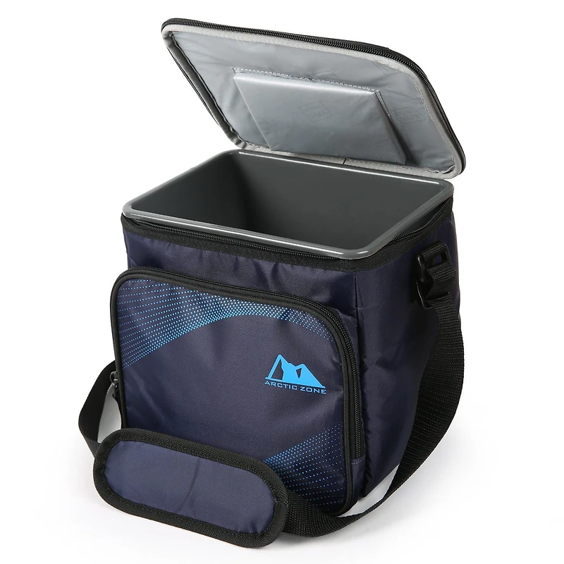 This lunch box is the perfect size for bigger appetites. An easy access lid allows you to grab food or drinks without opening the zipper. High density thermal insulation keeps food cold for hours and the leak proof HardBody® liner keeps it from being crushed. The Ultra Safe® lining is leak proof and features Microban® to protect against bacterial odours and stains and help make it easy to keep clean and there is a handy zippered pocket for your keys, cell phone, etc. Each sold separately.